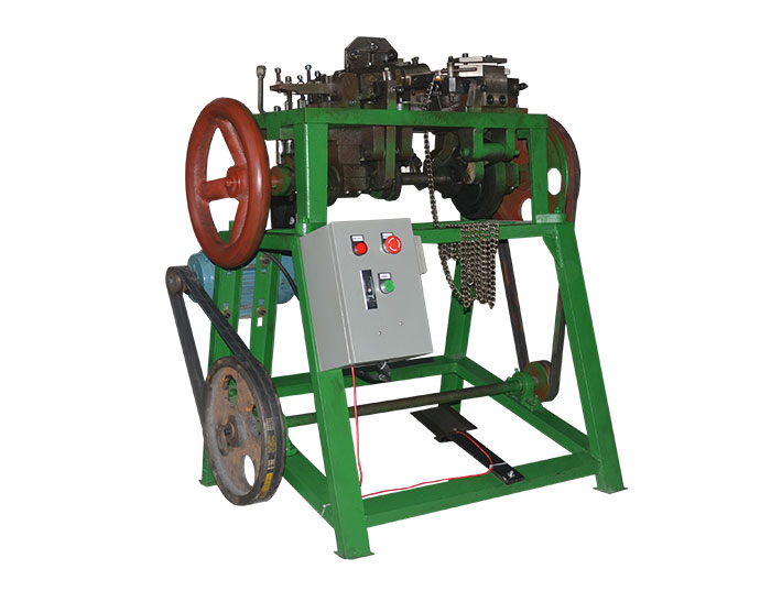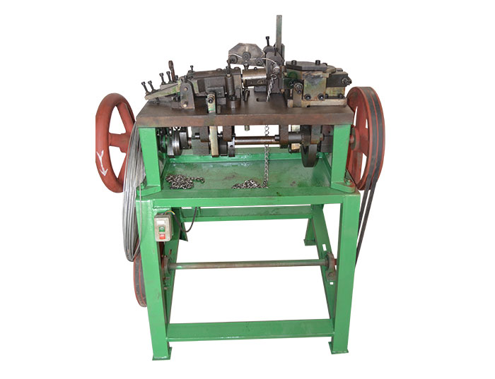 扭鏈機(jī)是我司根據(jù)市場(chǎng)需求設(shè)計(jì)制造的鏈條自動(dòng)生產(chǎn)機(jī)械,是一種專業(yè)用于扭鏈鏈環(huán)編接的機(jī)械設(shè)備。其特點(diǎn):操作方便、使用性良好、穩(wěn)定性能強(qiáng)、編接精度高、調(diào)整方便。該機(jī)械采用電機(jī)提供動(dòng)力,機(jī)械式傳動(dòng),傳動(dòng)方式包括皮帶、齒輪、凸輪、導(dǎo)軌等。通過傳動(dòng)機(jī)構(gòu)巧妙的傳動(dòng),配合不同的模具,可以生產(chǎn)不同規(guī)格的鏈條。適用線材包括:鐵線,不銹鋼線,銅線,鋁線等。模具采用堅(jiān)固耐磨的鉻鋼(Cr12MoV),可長期使用。電機(jī)采用名牌全銅電機(jī),經(jīng)久耐用。機(jī)械全自動(dòng)生產(chǎn),保養(yǎng)簡(jiǎn)單,廣泛運(yùn)用于寵物鏈、圍欄、裝飾、燈飾、家用小五金、鐵藝五金等行業(yè)。可以配合扭鏈焊機(jī)組成鏈條成型、對(duì)焊自動(dòng)化產(chǎn)線。