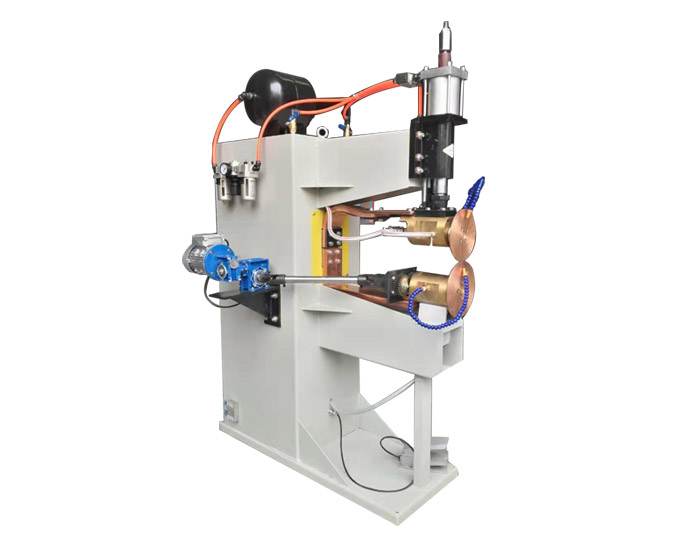 焊輪加壓采用氣缸加壓結構,氣缸壓力可調,氣缸行程可調,確保滾( 縫) 焊效果均勻美觀。